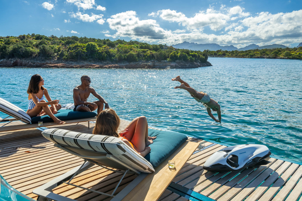 The Lagoon EIGHTY 2 is designed to offer you the best: open access to the ocean. Aft, the Lagoon 82 swim platform can reach up to 22 m² when deployed, an extension of the cockpit. Adaptable to suit your preferences and cruising plans, it has been designed to integrate a tender or jet ski, as well as serve as a setting for the most beautiful dives.